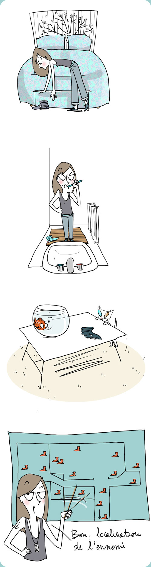 Avec ses chaussettes en boule laissées un peu partout.