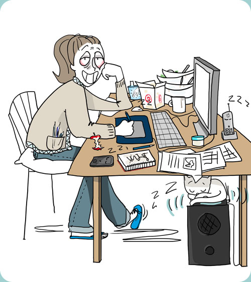 et bon c ton chat qui dort pour toi…quelle collaboration entre vous deux!…mais sympa ces illustrations…je vois que le retour de la nourriture est la…chouette..;o)