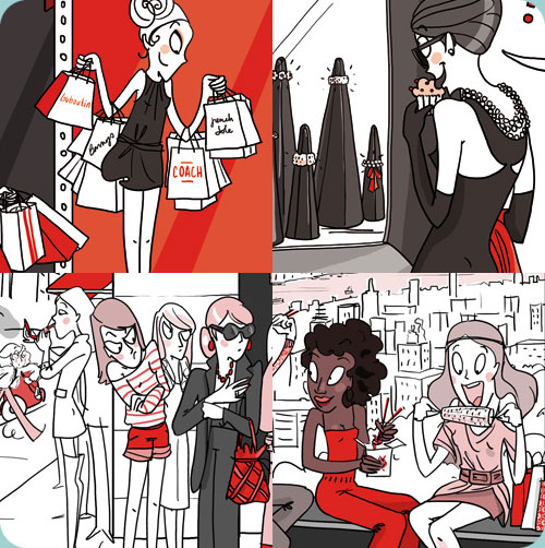 Pour un carnet de shopping tendance, on a demandé à une illustratrice hyper poitue question mode de s’occuper des illustrations.