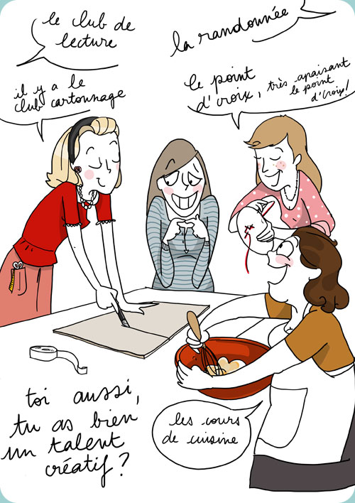 Héhé! Et dans le même genre de réunion j’ai nommé : la « papothèque ». Ouais ma mère y allait souvent, pour prendre le café et discuter avec ses copines fondatrices de ce « sos sans amies spécial quadragénaire »… Malheureusement ce club est mort parce que les sans amies n’osaient pas y aller! ^^ Mais bon en y réfléchissant c’était pas mal comme activité distrayante pour les « sans talents »^^.