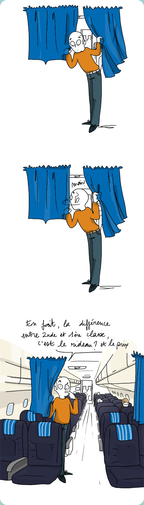 C’est l’ancien steward qui vous parle : en effet, certains petits avions n’ont pas de différence physique entre la 1ère/Business et la Eco (la Tempo). Cependant, dans ces cas on essaie de laisser un siège vide entre chaque passager. Le repas n’est pas le même, mais parfois celui de la classe éco est malgré tout plus sexy.