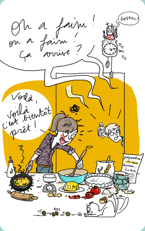 L’autre solution, c’est de laisser un truc en entrée à ses convives pour qu’ils patientent tranquilement pendant le repas, voire de les inviter à participer 🙂