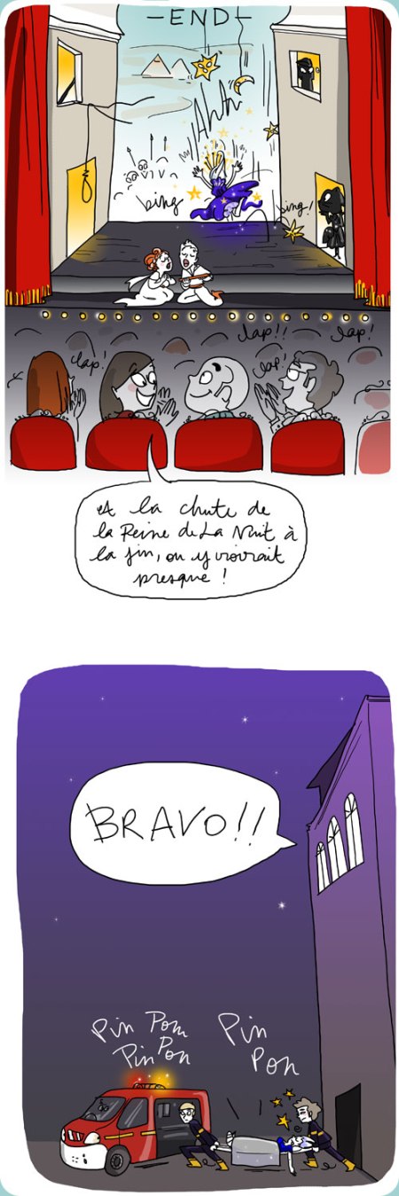 Heureusement, la fin ne fut pas aussi tragique que dans le livret de la flûte enchantée. Nous souhaitons donc à la Reine de la Nuit un bon rétablissement 😉